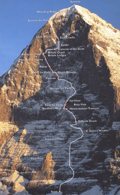 • 1938: Първо изкачване на северната стена от Андерл Хекмайер, Хайнрих Харер, Фриц Каспарек и Лудвиг Фьорг, осъществено за три дни.