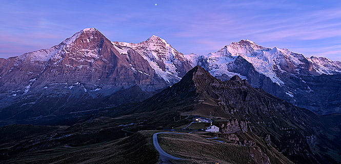 Масивната стена на трите върха в района Юнгфрау, Мьонх и Айгер е най-забележителната характеристика на Бернските Aлпи, тъй като лесно може да бъде забелязана от много места от север. Така най-високите върхове в този дял Финщерархорн /4270 м./ и Алетшхорн /4190 ./, които са разположени на 10 км. южно, остават в сянка на по-ниския Айгер.