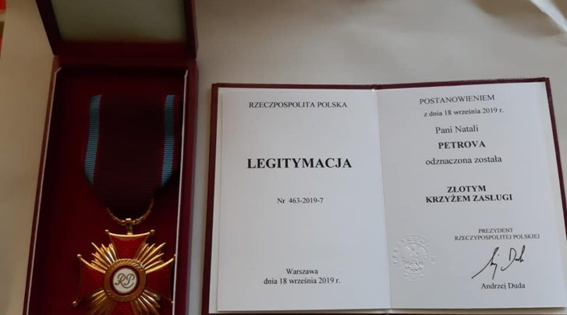 Директорът на Международния фестивал на планинарското и екстремно кино Натали Петрова получи най-високото държавно отличие на Полша – Златен кръст.