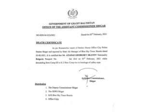 Причина за смъртта на Атанас Скатов в Каракорум при слизането му от Лагер 3 на К2 е скъсано въже. Това пише в двата смъртни акта – от правителството на автономната област Гилгит Балтистан и от болницата в Скарду, съобщават „24 часа“.