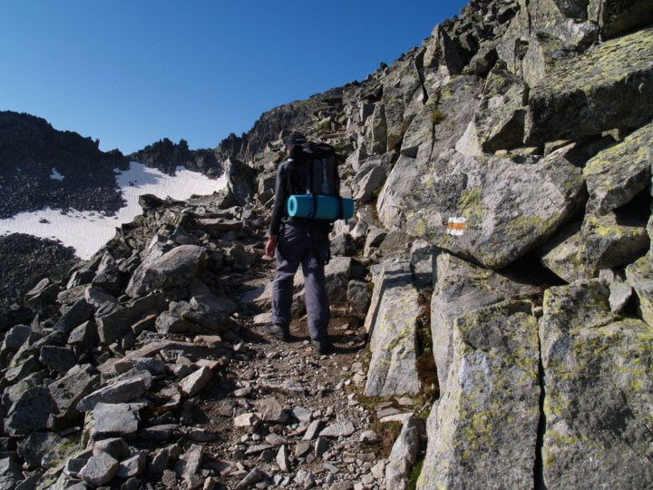 през лятото – обикновена туристическа екипировка, зима – пикел, въже
