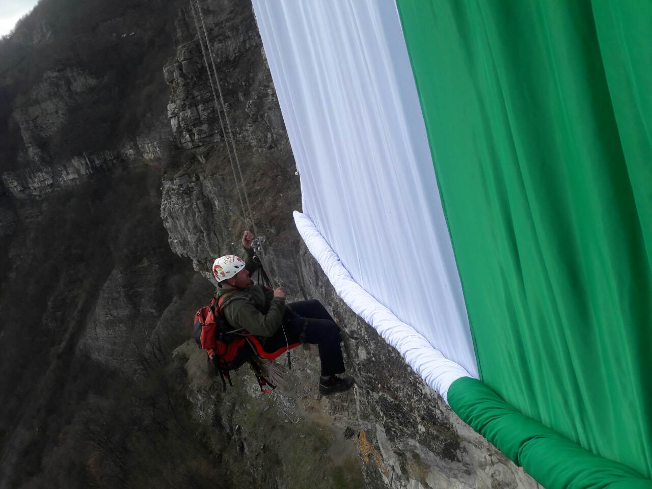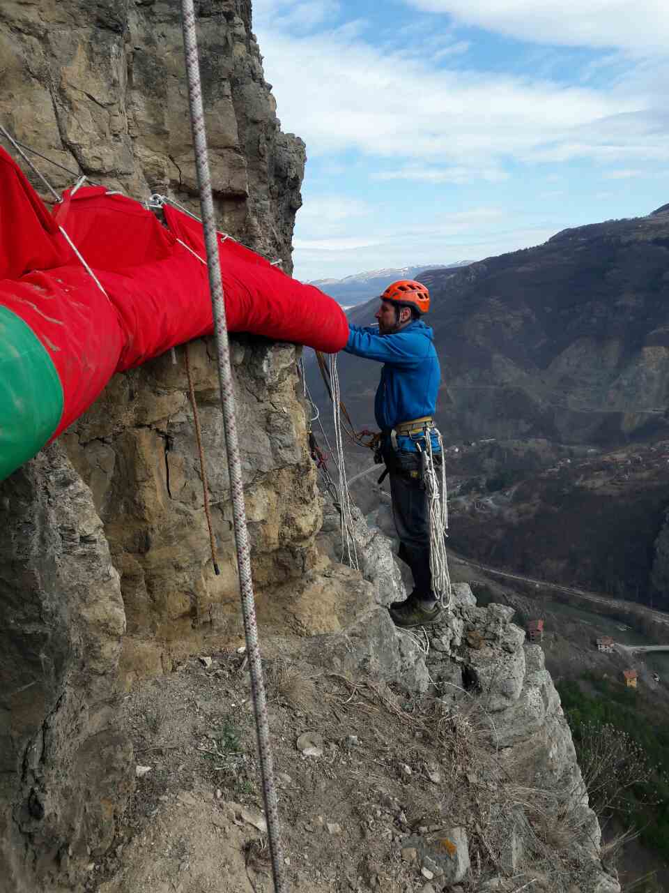 Спускането на внушителното знаме, наред с предизвикателствата пред ушиването, е изисквало сериозна подготовка. Вчера алпинисти са конструирали в отвесната скала рамка от стоманени въжета. „Днес с рапели фиксирахме посредством капси въжето за рамката“, разказа Емил Ангелов от отряда на ПСС в Лакатник пред „Върхове”. Той за поредна година участва в церемонията по екстремното развяване на трибагреника, заедно с небезизвестния алпинист Никола Леваков. Освен тях, в родолюбивата мисия за приветстване на свободна България от скалите, въжетата опъват и Семер Ажур и Бисер Ангелов. Четиримата не само разпъват знамето по дължината на 110-метровата скала, но и го предпазват от скъсване, свързвайки го със стоманената рамка.