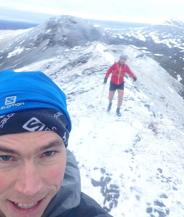 Те бягаха заедно през Easains и Grey Corries преди Том да продължи с Дони към Aonachs, Carn Mor Dearg и Ben Nevis и до финала обратно на хостела. Том, 35-годишен, от Глазгоу, разказва: