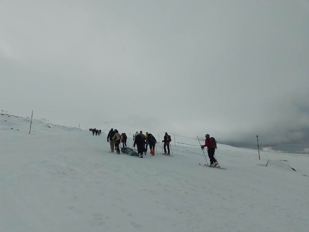 Петима човека с ограничена или пълна неподвижност достигнаха Черни връх в събота, привързани в специални шейни, теглени от около 50 доброволци.