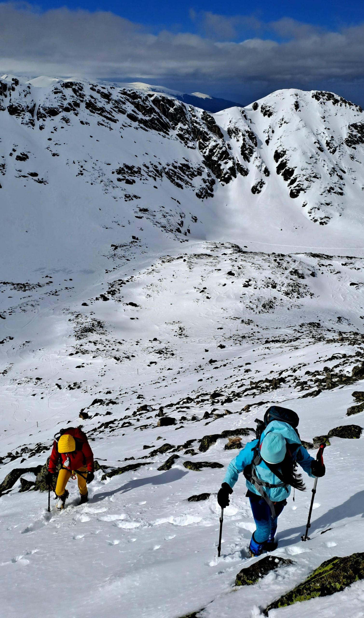 Аз открих зимната планина в Рила, над Самоков, в края на 80-те години. Тогава зимите бяха истински и без едни скиорски щеки на Polsport нямах шанс, с тежката и неудобна раница, да си пробивам път през снеговете към Мусала, Заврачица, Мальовица и Езерата. Тогава нямаше снегоходки в планината, а израза „ски с колани“ го бях чувал, но не знаех какво точно означава – ходехме „по обувки“. Сам откривах как да ги използвам, и още тогава направих километри, лазейки в снега, с двете щеки перпендикулярно пред мен, за по-голяма площ. Когато започнеш да затъваш в над 50-60 см. плътен сняг, това става единственият начин за придвижване. Често тогава имаше такива условия в долините, където снегът беше навят, а горе по-високо ставаше по-нормално движението.