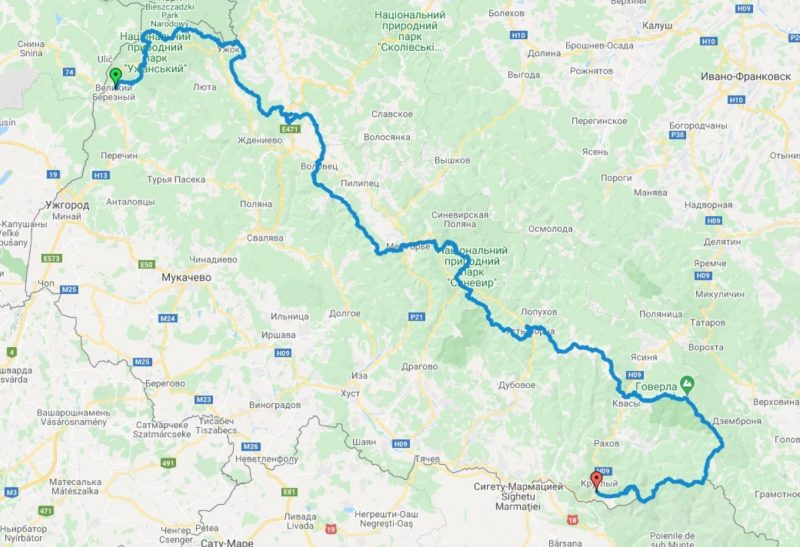 Закарпатският маршрут е най-дългата пешеходна пътека в страната. Простира се на 398 км през Карпатите в Украйна, от село Велики Березни, на границата със Словакия, до Дилове, близо до границата с Румъния.